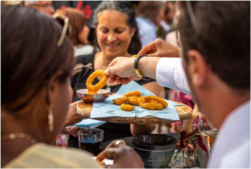 We serveren uw gasten 3 frituurhapjes en 5 gevarieerde koude en warme gerechtjes. Prosecco, wijnen, lichte bieren en frisdranken zijn inbegrepen.